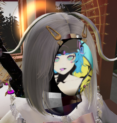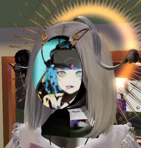 Also, I have a new face! I prefer to be not entirely human in Second Life. I had kind of an angular, low-poly crystalline face previously, but now I've replaced it with a kind of mirror-trap instead. It cycles through different faces every 30 seconds and displays them using a combination of a projector with a specific focus depth and a Blinn-Phong reflective surface to provide a very eerie look where the face is peering out from inside of my head rather than from the surface, and has some three-dimensionality even though it's only a 2D image. It's difficult to display with a picture, it looks better in motion.